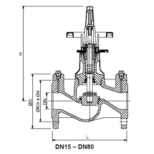 - корпус клапана выполнен из чугуна GG25, покрашен в синий цвет;